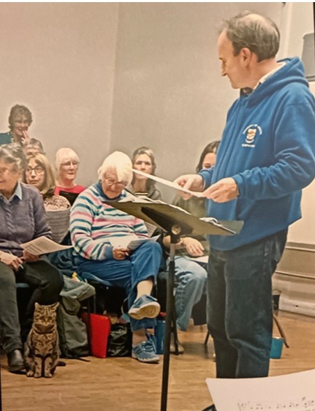New members are always welcome. Our thanks to a sharp-eyed member of the soprano section who spotted a prospective new member at a recent rehearsal at Penair School. Having tried all the sections, the decision was "I will join the Tenors, but I will not pay subs".